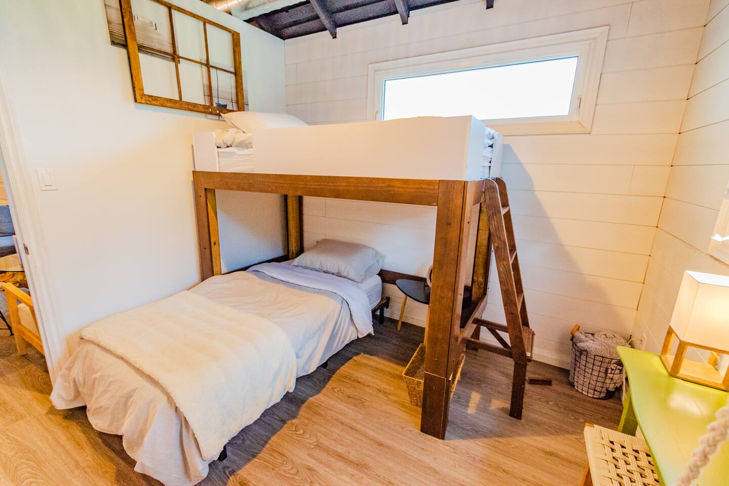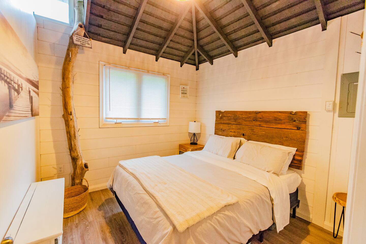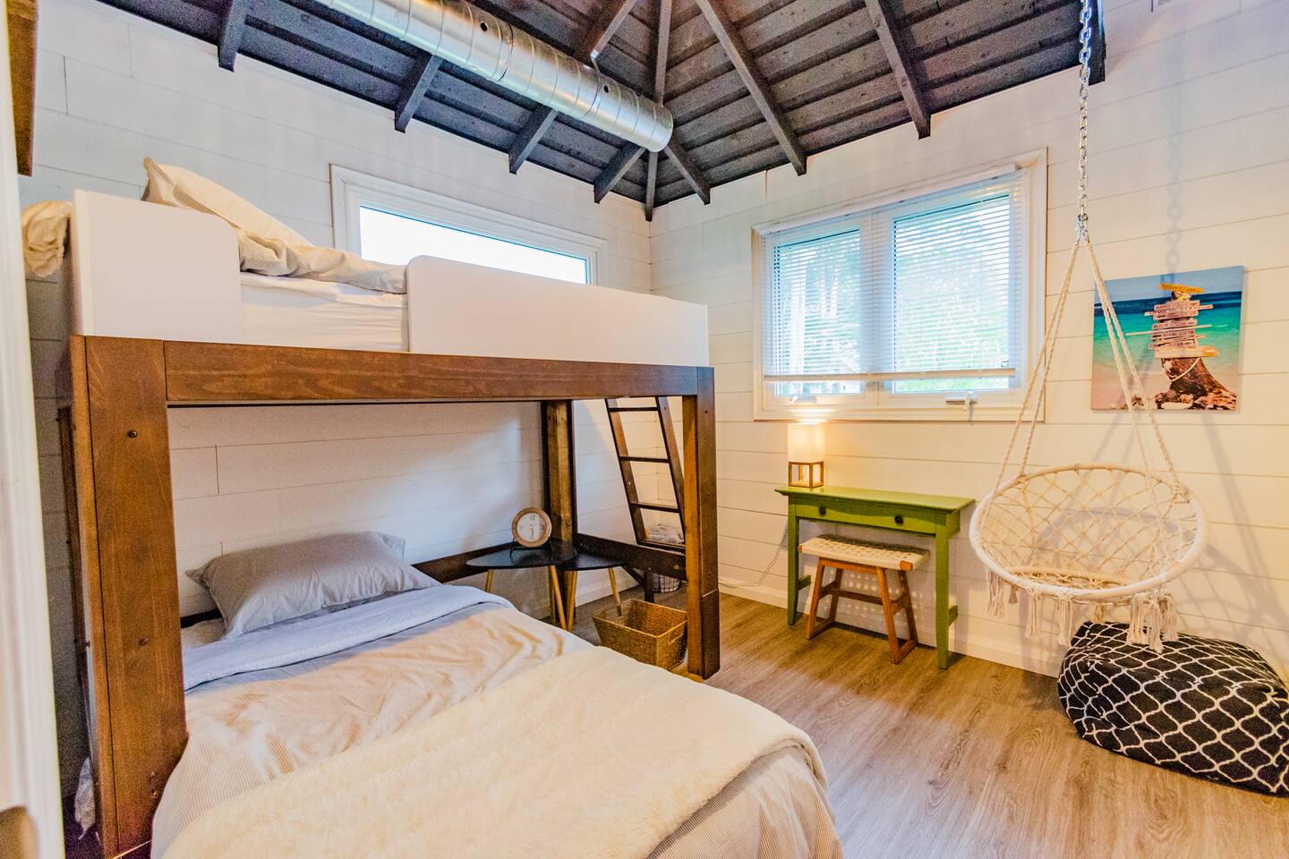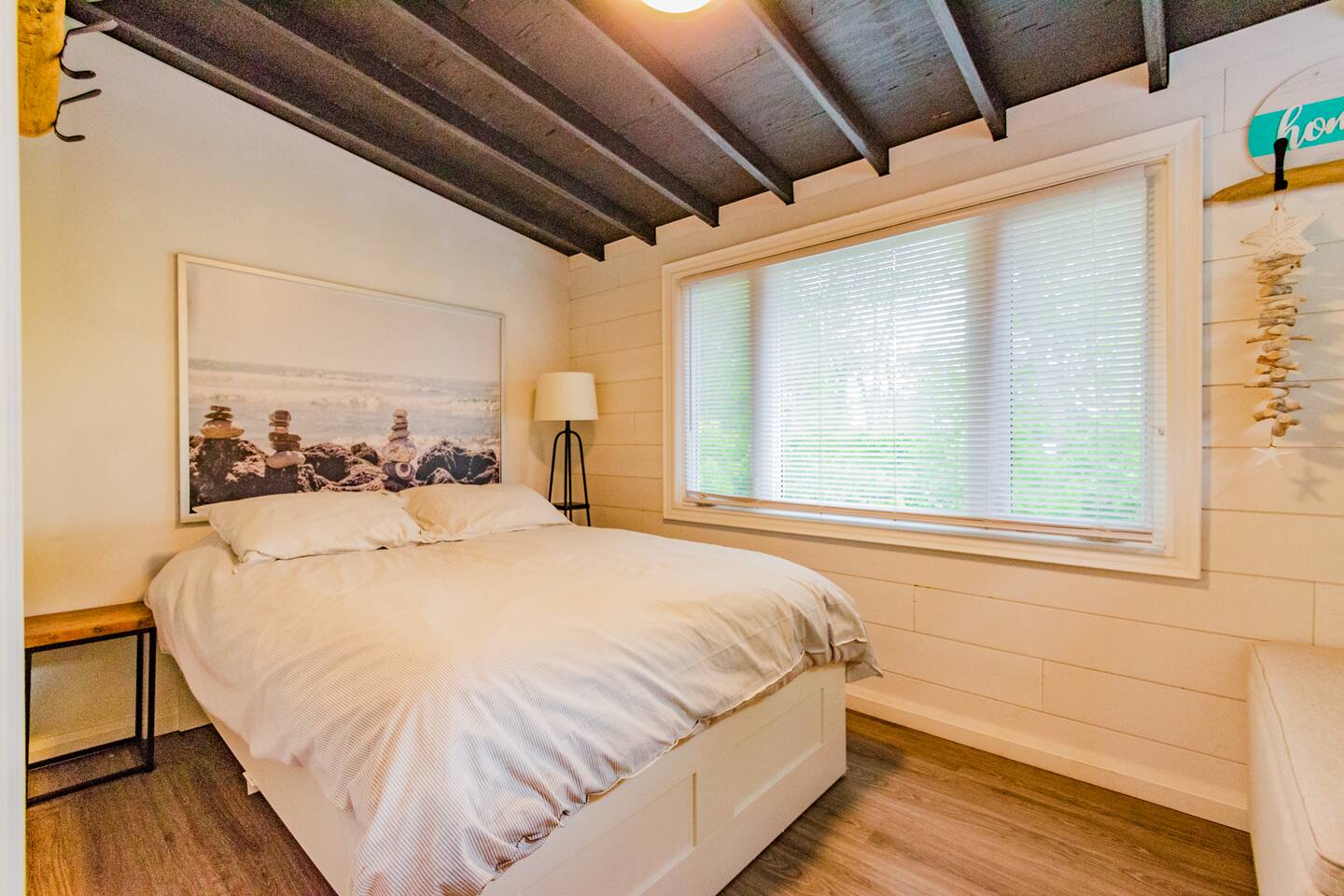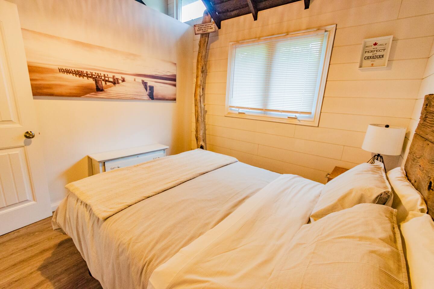 One of our Cottage's most special feature is its private access to the lake. This secluded spot is perfect for picnicking on the shore, swimming & frolicking around. Enjoy a leisure day at the beach, offering an exclusive slice of waterfront calm. Crystal Beach is located less than 15 min away. You may enjoy the charm of both Port Colborne & Crystal Beach town with great options for food and waterfront vibes. Bedroom 1 has a comfortable queen size bed, Bedroom 2 has a bunk bed & bedroom 3 has a cozy double bed. We also have a sofa bed in the living room. The washer & dryer are located in the bathroom. Kitchen is fully functional & well equipped for entertaining and enjoying cooking. The island offers ample space to gather around and cook or munch on food. The outdoor oasis offers a cozy deck with bbq grill & dining area. The yard offers sun loungers & fire pit. You can comfortably park up to 3 Cars. Our cottage has a beautiful rustic & cozy charm perfect for a romantic getaway or for family/friends retreat. We hope you make wonderful memories at our home.