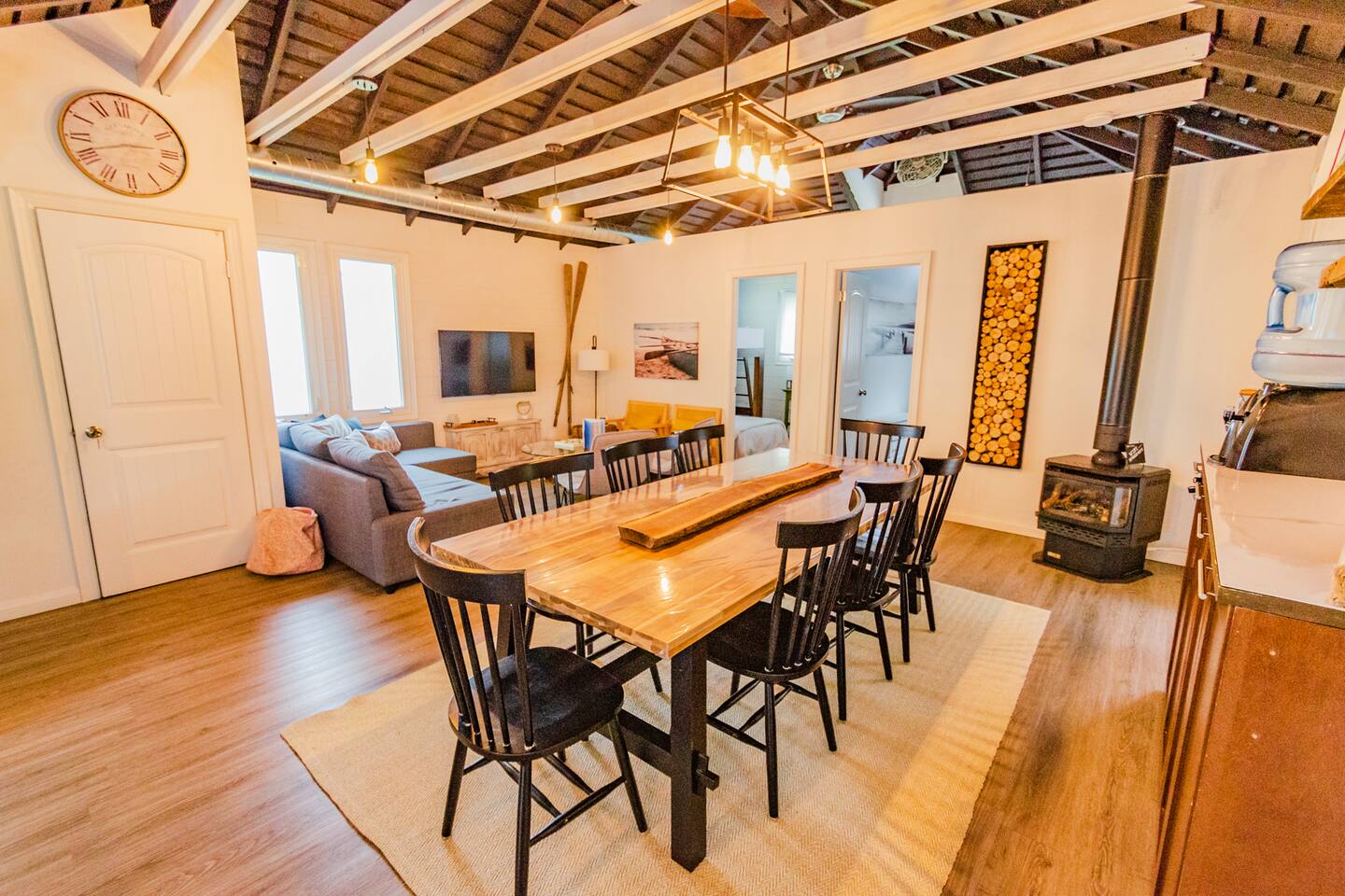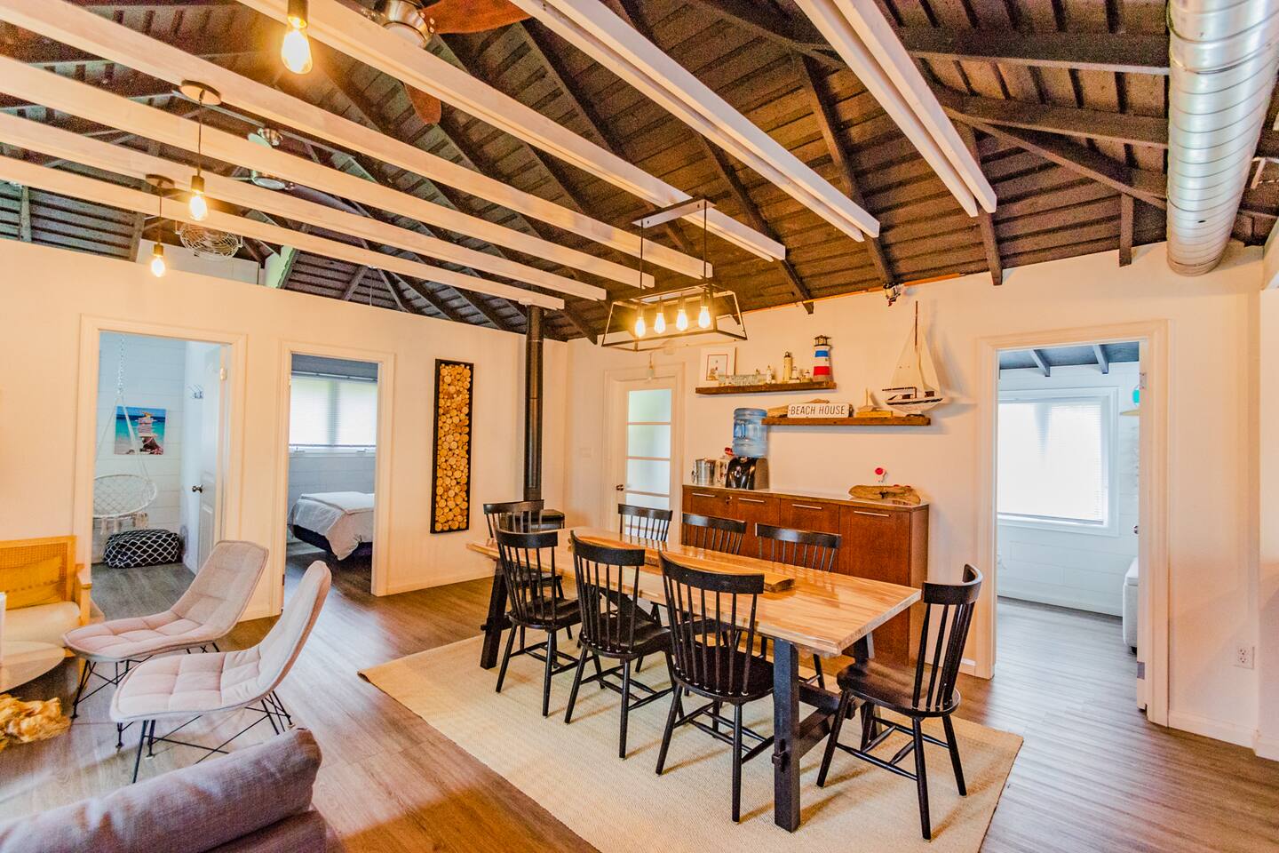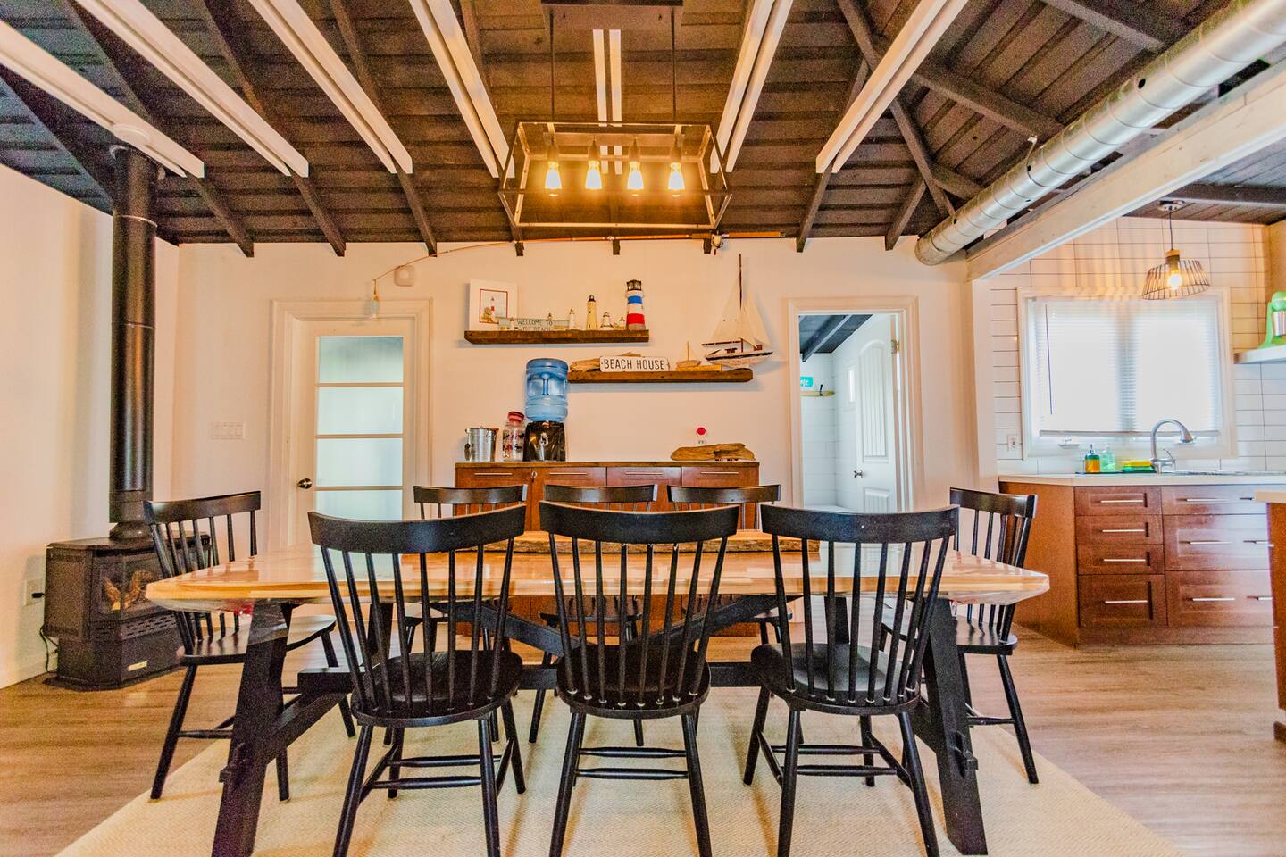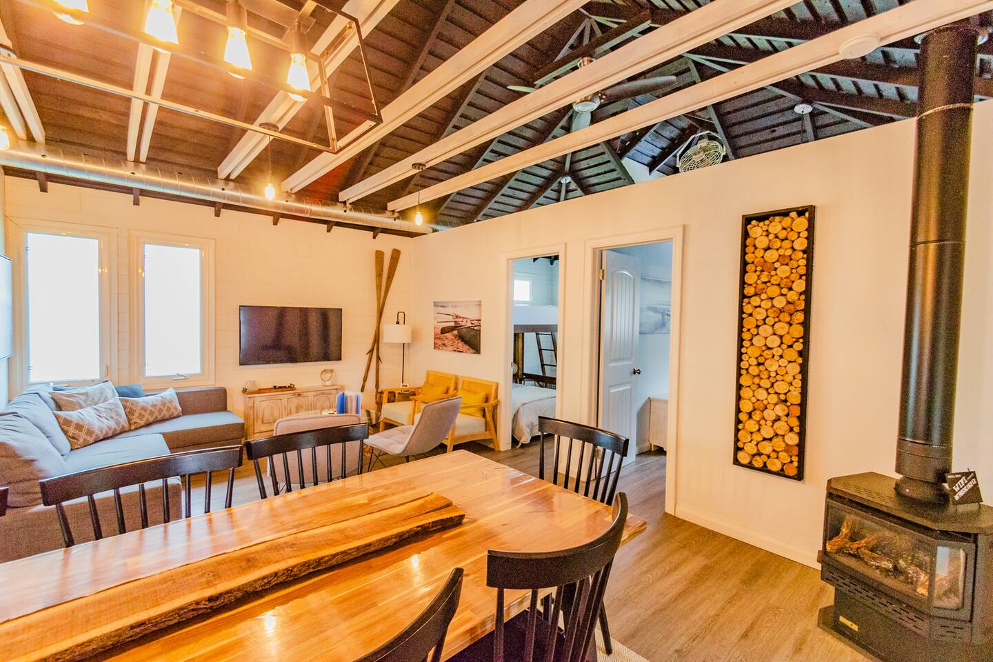 Enjoy a warm and inviting stay at our 3 bedroom rustic cottage with private lake access. Inside, you’ll find natural wood finishes and a fireplace for relaxing comfort. Outside, the spacious backyard offers a fire pit for stargazing and s’mores, plus a BBQ grill for easy outdoor dining.