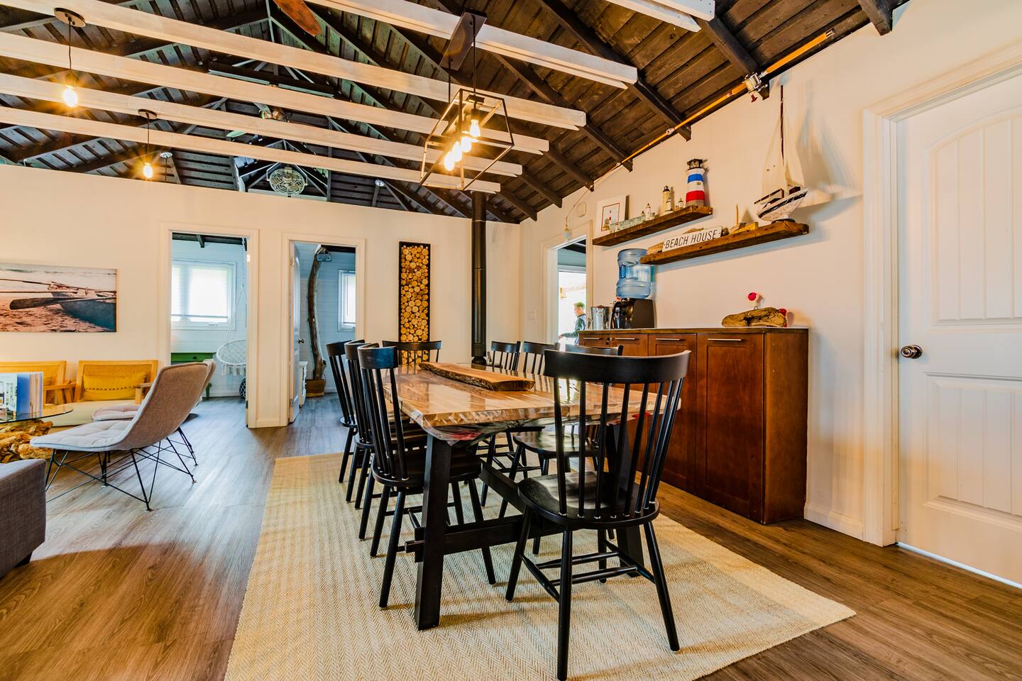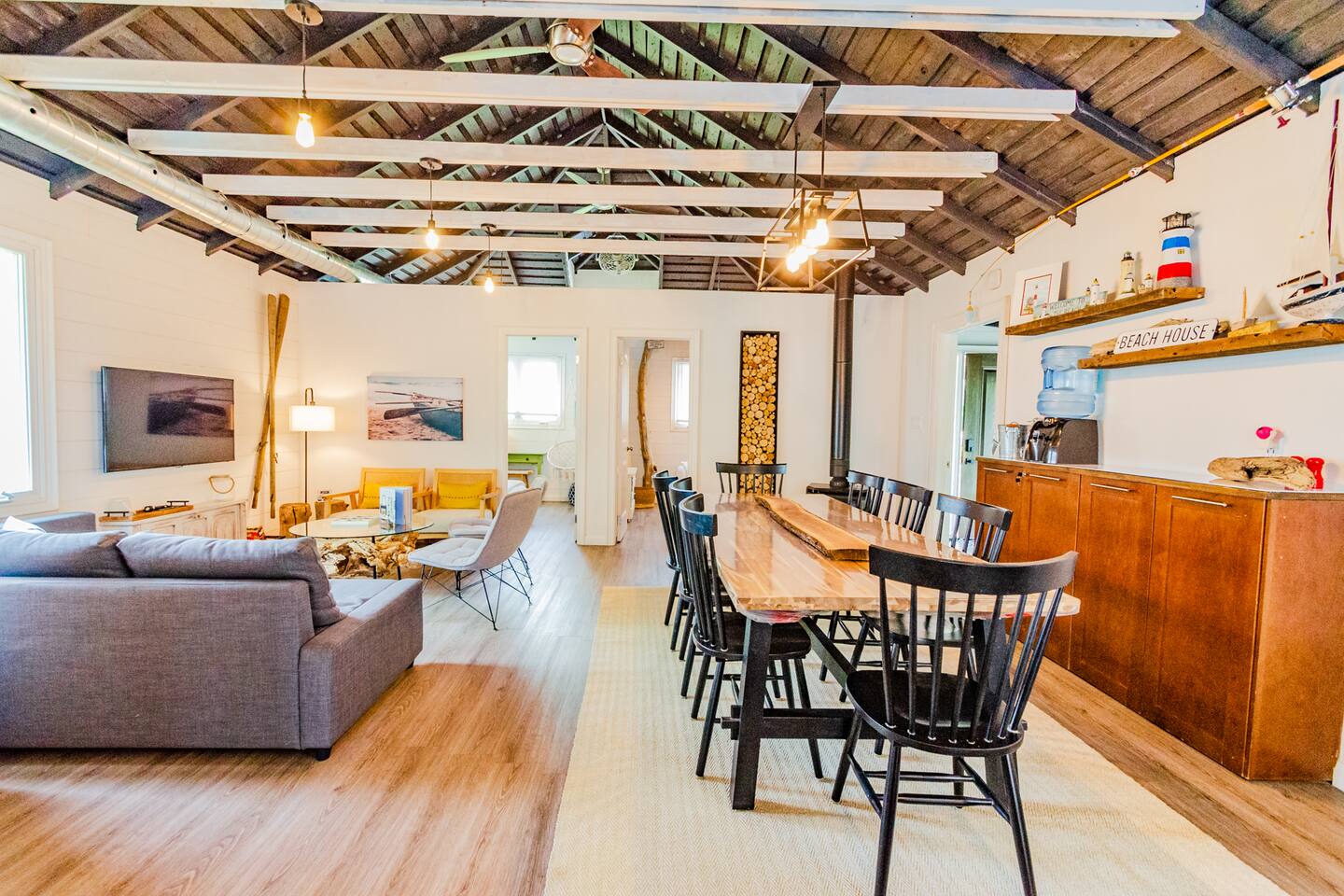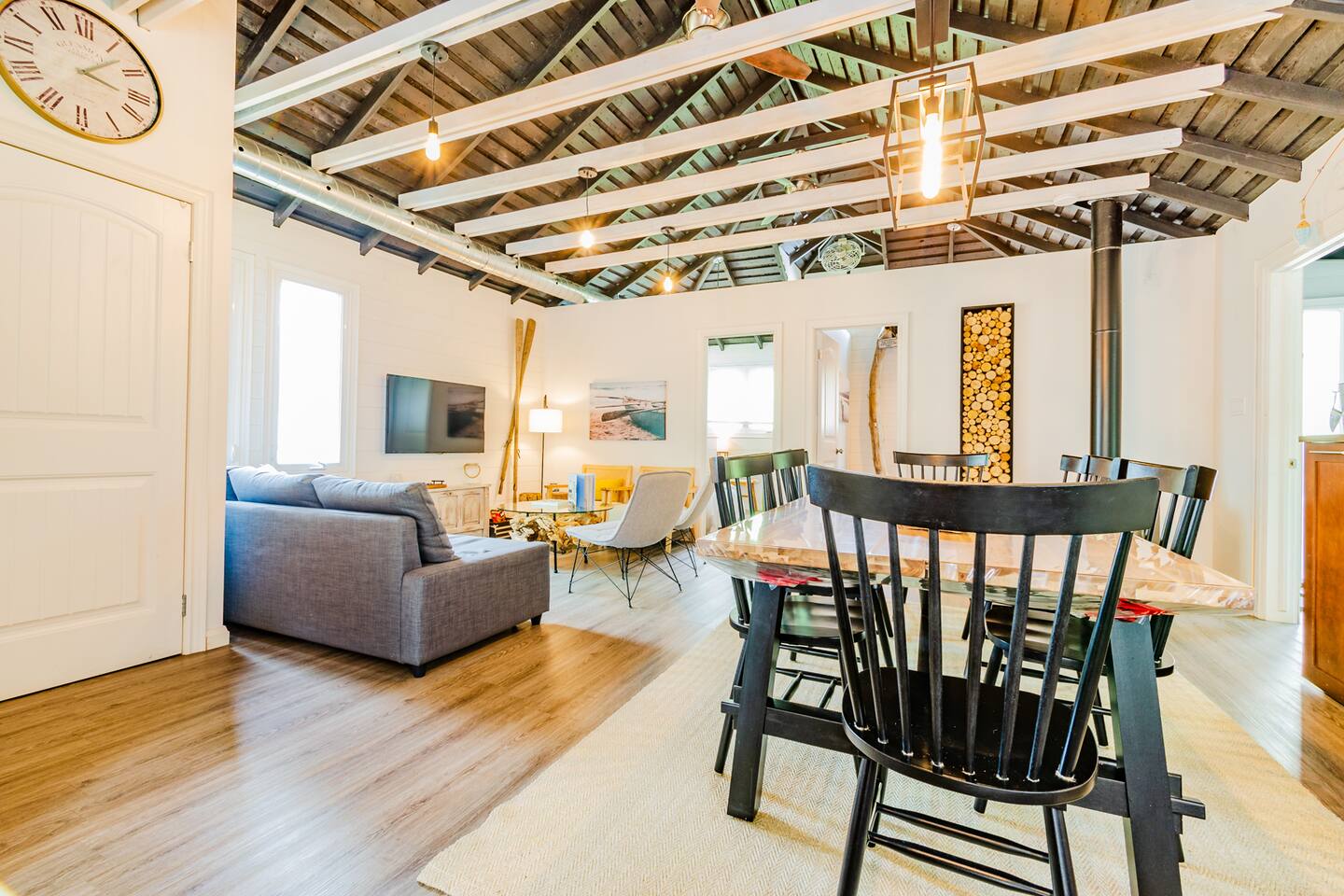 Enjoy a warm and inviting stay at our 3 bedroom rustic cottage with private lake access. Inside, you’ll find natural wood finishes and a fireplace for relaxing comfort. Outside, the spacious backyard offers a fire pit for stargazing and s’mores, plus a BBQ grill for easy outdoor dining.