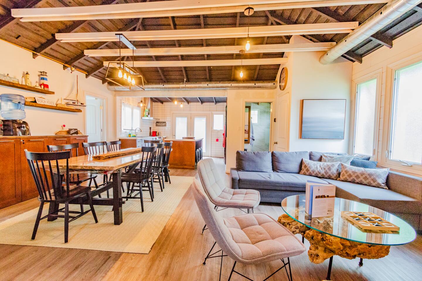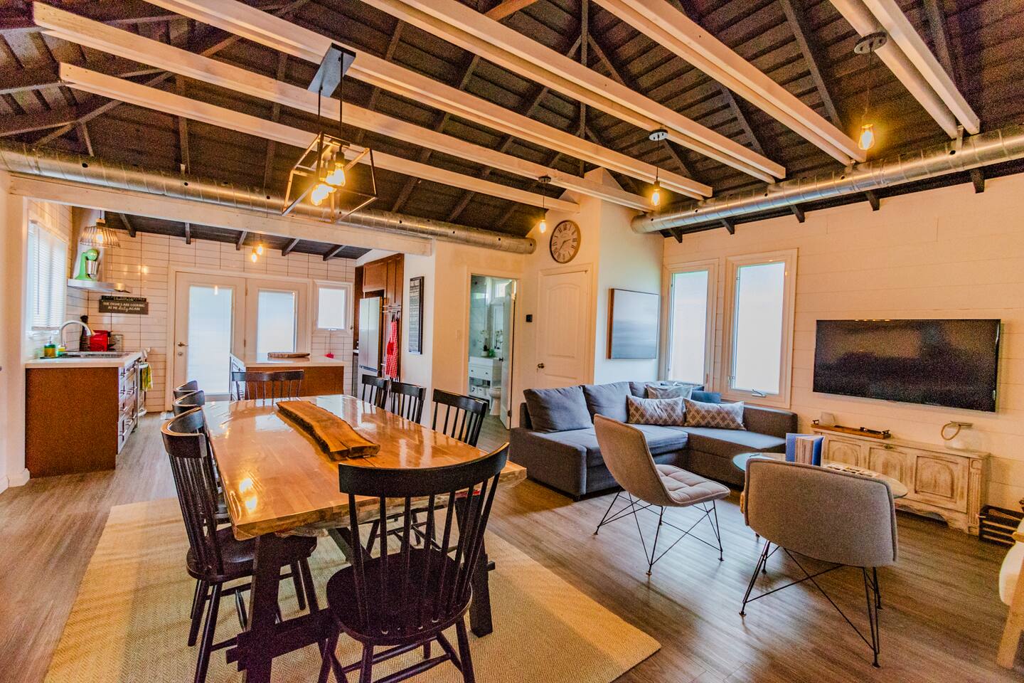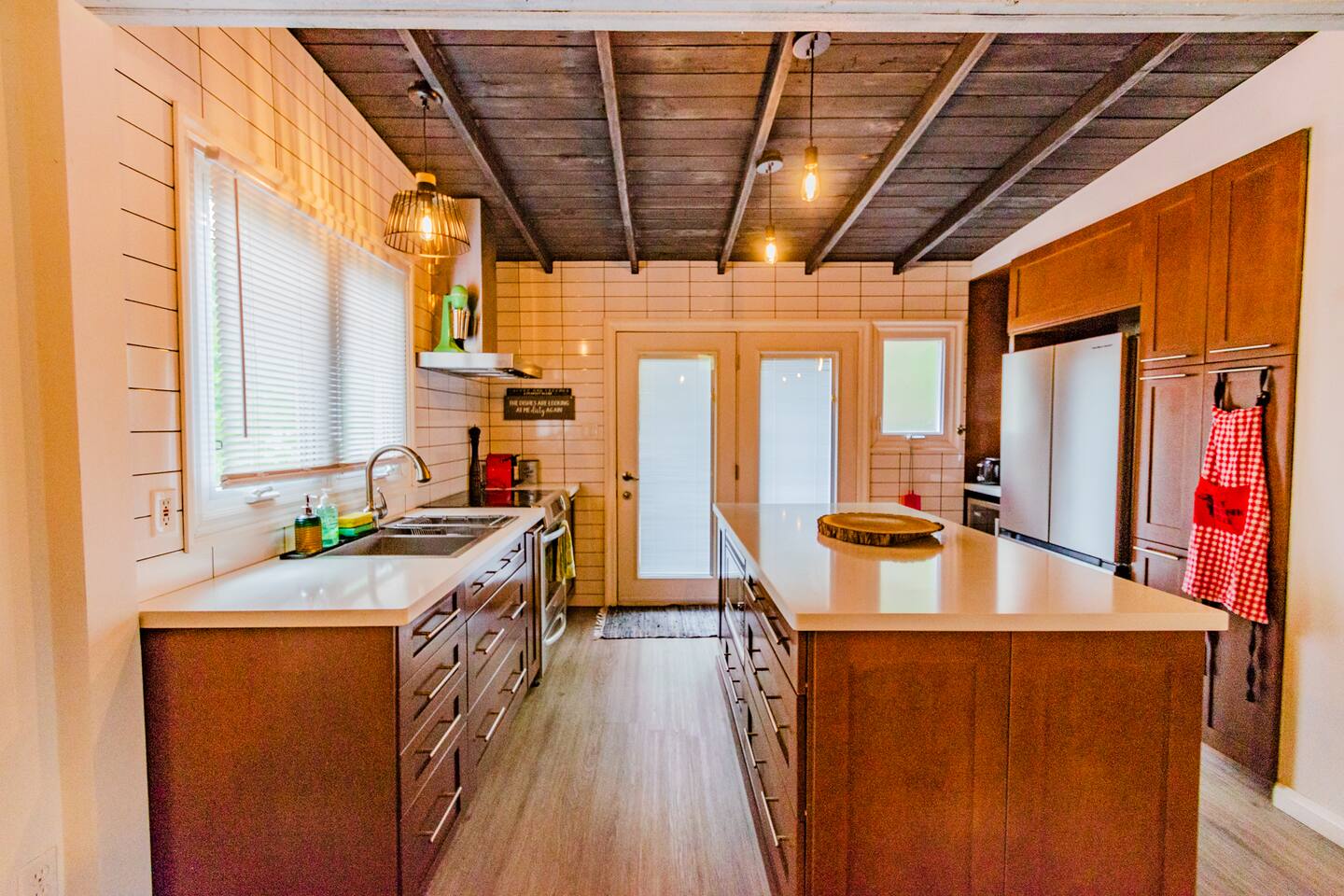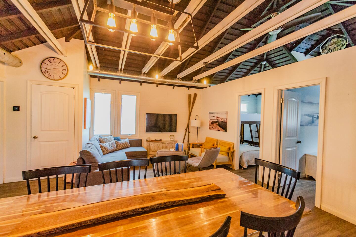 Enjoy a warm and inviting stay at our 3 bedroom rustic cottage with private lake access. Inside, you’ll find natural wood finishes and a fireplace for relaxing comfort. Outside, the spacious backyard offers a fire pit for stargazing and s’mores, plus a BBQ grill for easy outdoor dining.