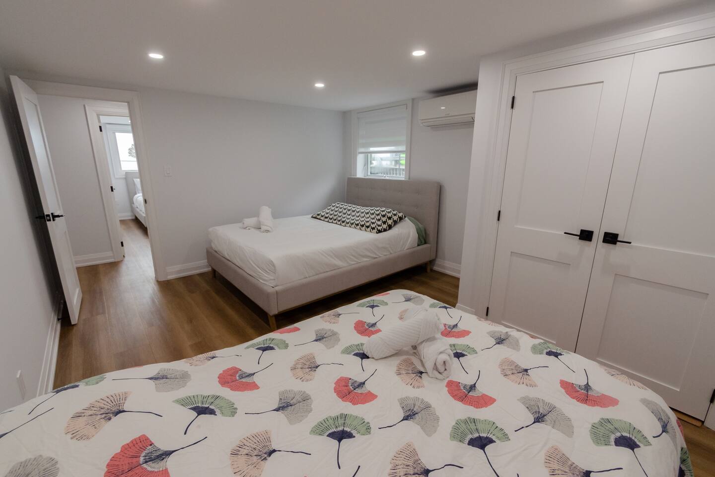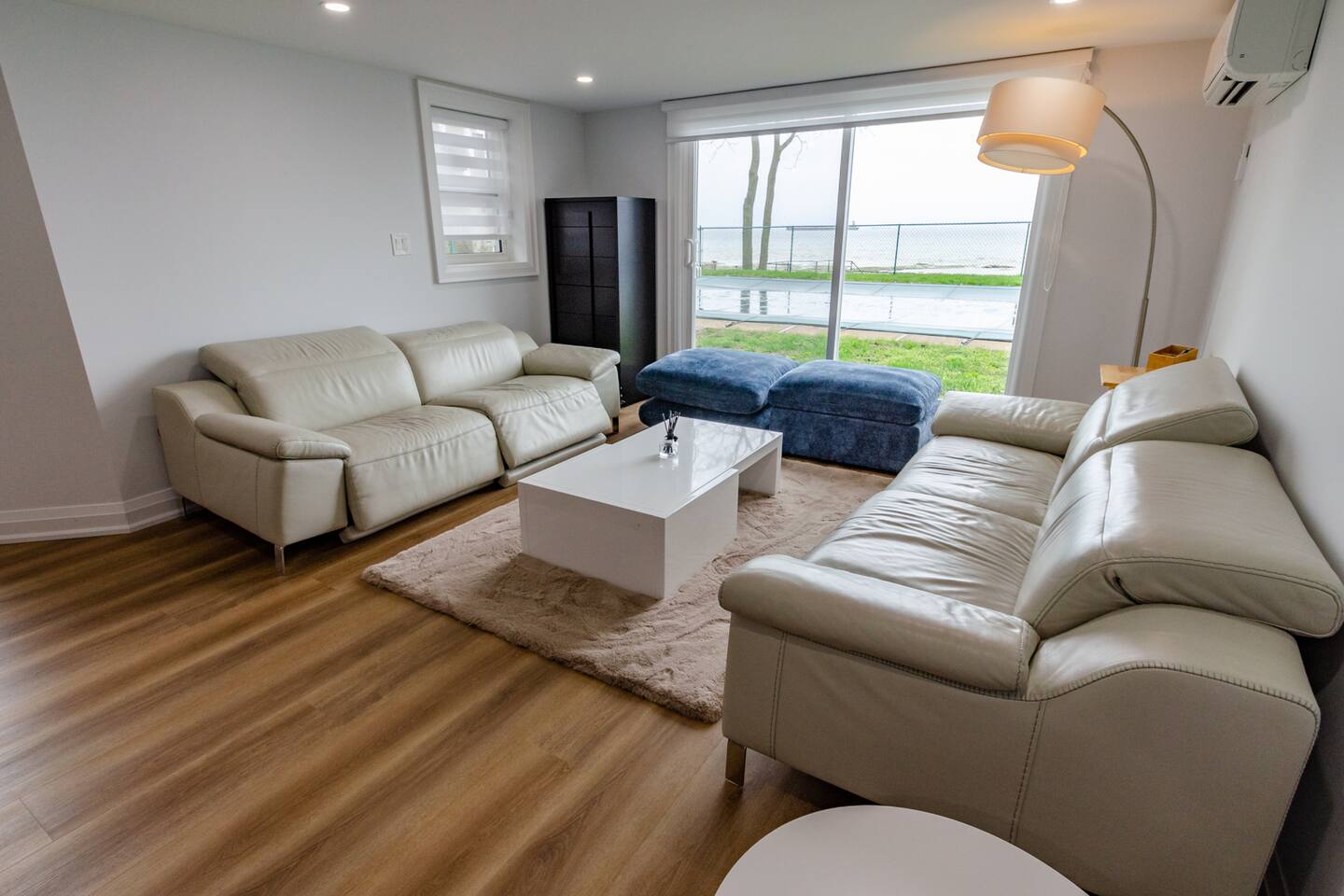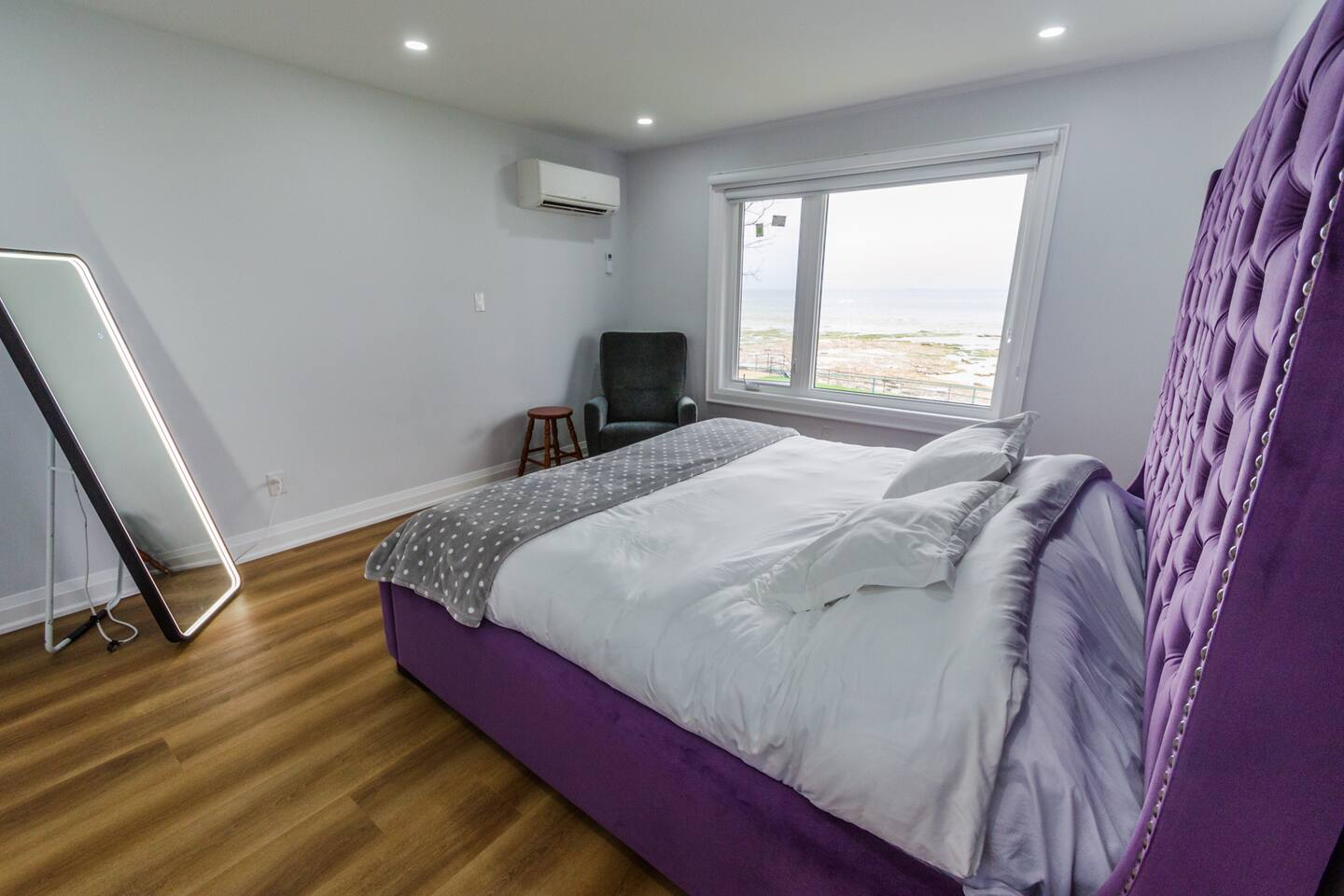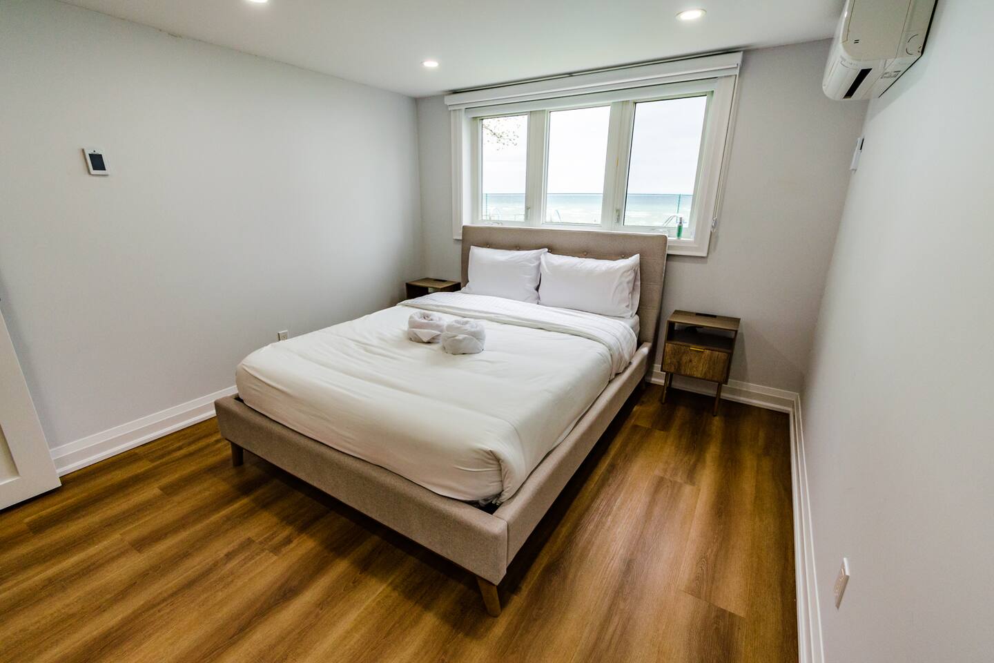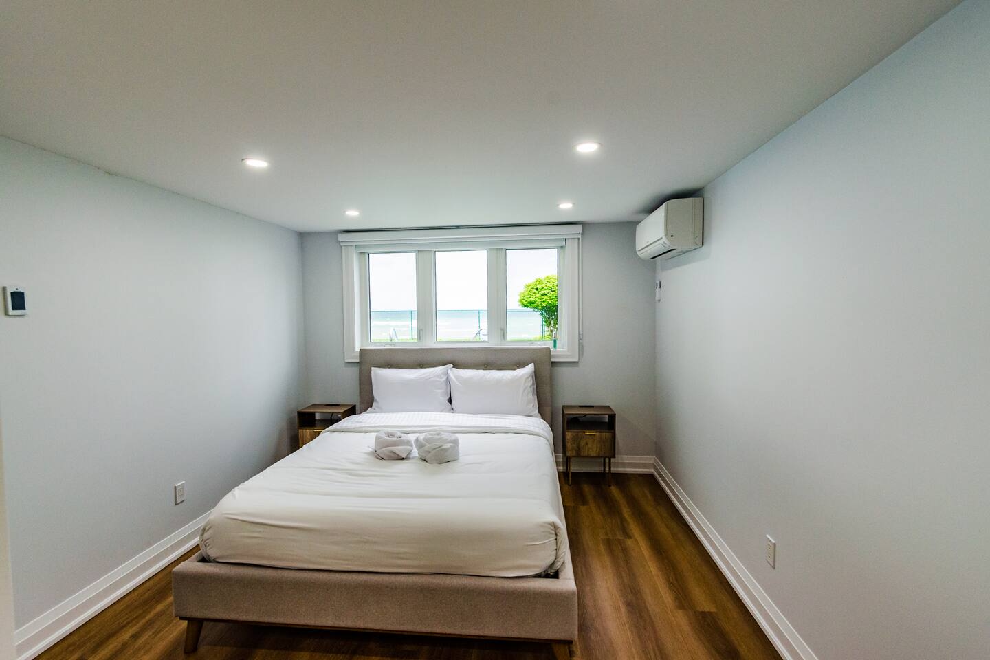 This exquisite Five bedrooms (8 beds), Three Full Bathrooms, a powder room Lake house offers unparalleled luxury and comfort. Boasting private & direct access to the beach and a serene private swimming pool. Enjoy this spacious & beautiful newly renovated, appointed interiors, designed for both relaxation & entertaining. The fully equipped kitchen is chef's delight, featuring modern appliances & ample counter & storage space, perfect for preparing gourmet meals or casual snacks. With Five bedrooms, this house provides ample space and privacy for large families or groups. Main Floor Description: Three bedrooms -Bedroom 1: King Size Bed, Bedroom 2: 1 Queen Bed, Bedroom 3: Bunk bed - 1 double, 1 Twin Bed on top and 1 Twin bed roll out. One Full Bathroom & a Powder room. Laundry Room, Living room with TV & Kitchen & dining, access to the backyard via deck. Walkout Basement Description: Two Bedrooms - Bedroom 4: 1 Queen bed and Bedroom 5: 1 Queen & 1 Double Bed. Two Full Bathrooms, dedicated workstation. Living Room 2 with TV, walkout to the pool area, Children's playroom with TV & a Single Mattress. Extra Queen Mattress provided upon request. Outside, the expansive grounds invite you to embrace waterfront living. Enjoy direct, private access to the lake ideal for picnic, sunbathing, swimming. Cool off in the refreshing private swimming pool, or simply relax on the spacious deck, taking in the breathtaking views while grilling food or enjoying marshmallows around the fire pit. This house is a perfect setting for making memories and enjoying the luxury. Pls note the pool is maintained and cleaned on a weekly basis. The water quality is tested too. The mature trees around the house and the winds can cause dead leaves and debris to accumulate in few hours on the pool which is beyond our control. We appreciate your understanding and help with using skimmer net to remove the natural debris as needed. You can park ONLY 4 to 5 cars. Please note we do have one spot of car parking available in the garage with Tesla Charger (not EV Charger) The house is located in a beautiful town of Port Colborne. So much to explore and enjoy. Be ready you’ll be On Lake Time once you arrive this beautiful town ☺️
