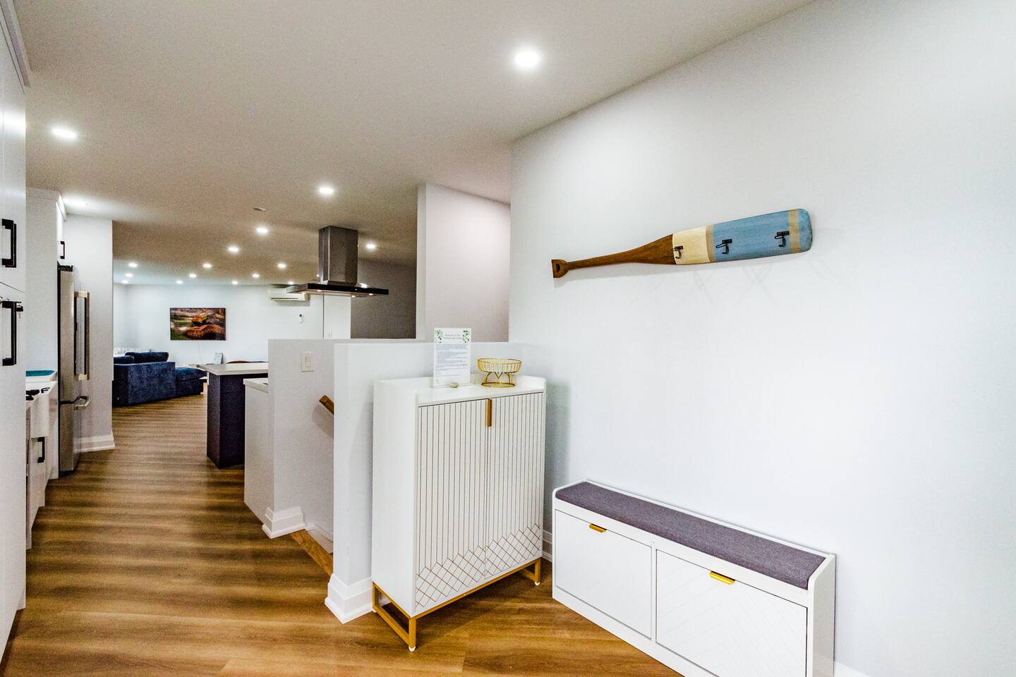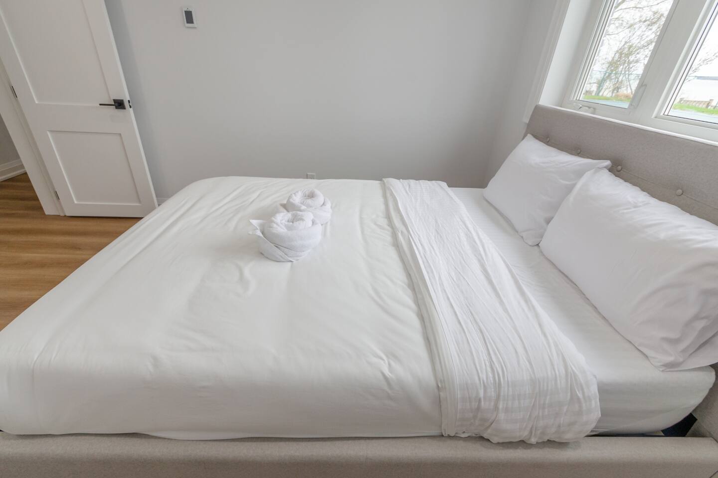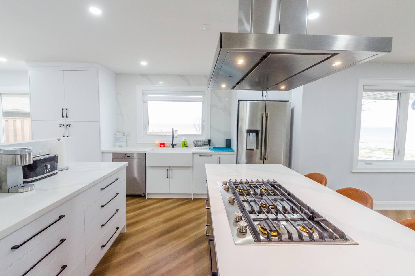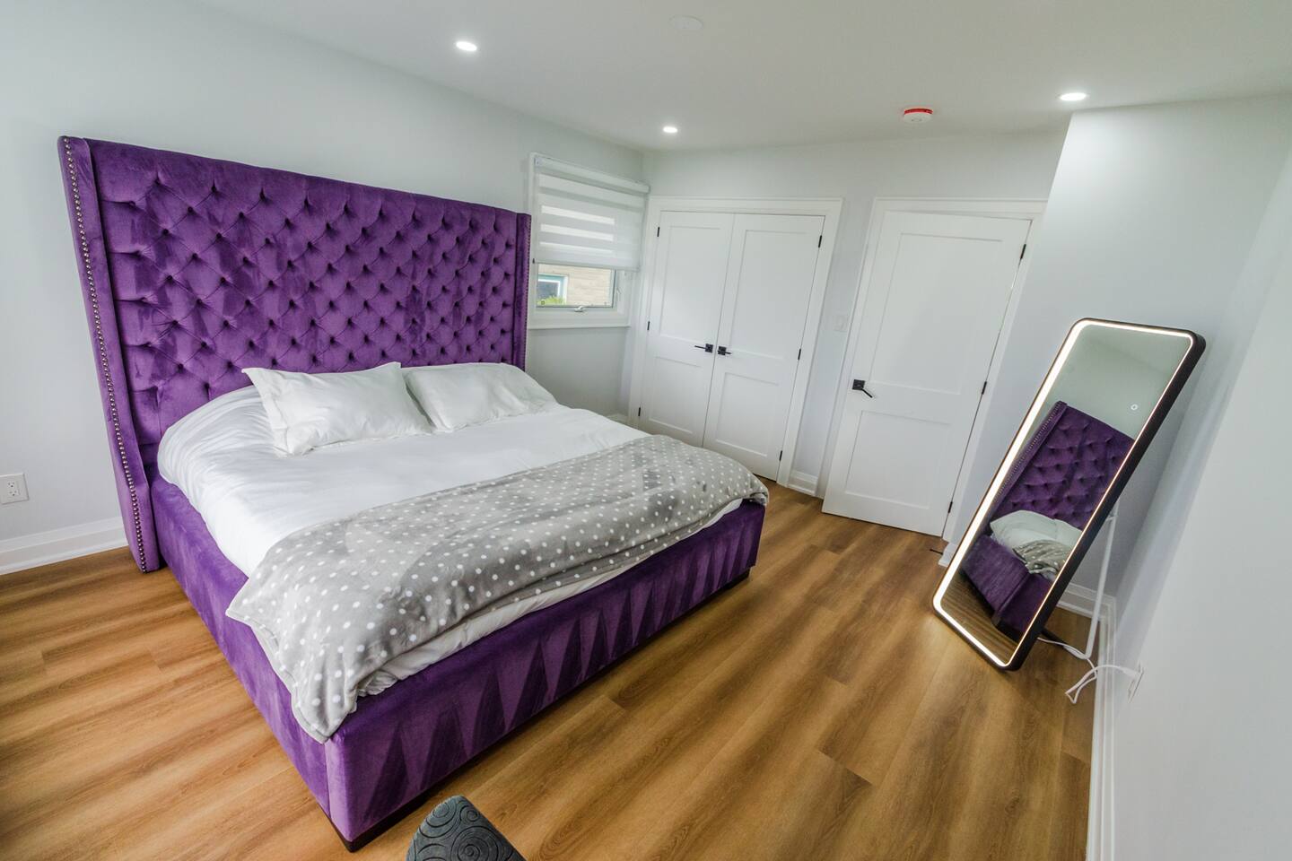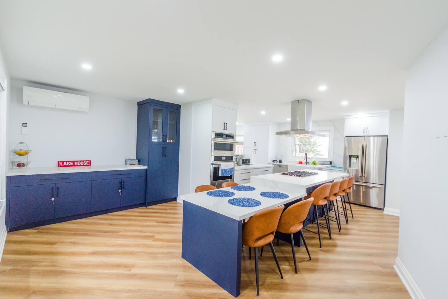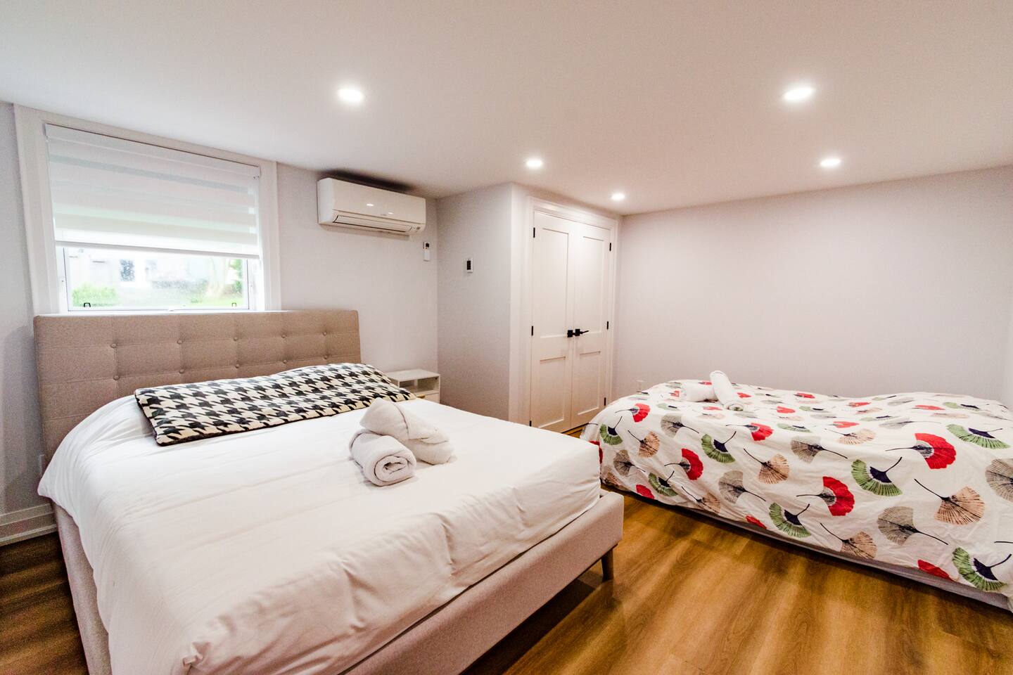 This exquisite Five bedrooms (8 beds), Three Full Bathrooms, a powder room Lake house offers unparalleled luxury and comfort. Boasting private & direct access to the beach and a serene private swimming pool. Enjoy this spacious & beautiful newly renovated, appointed interiors, designed for both relaxation & entertaining. The fully equipped kitchen is chef's delight, featuring modern appliances & ample counter & storage space, perfect for preparing gourmet meals or casual snacks. With Five bedrooms, this house provides ample space and privacy for large families or groups. Main Floor Description: Three bedrooms -Bedroom 1: King Size Bed, Bedroom 2: 1 Queen Bed, Bedroom 3: Bunk bed - 1 double, 1 Twin Bed on top and 1 Twin bed roll out. One Full Bathroom & a Powder room. Laundry Room, Living room with TV & Kitchen & dining, access to the backyard via deck. Walkout Basement Description: Two Bedrooms - Bedroom 4: 1 Queen bed and Bedroom 5: 1 Queen & 1 Double Bed. Two Full Bathrooms, dedicated workstation. Living Room 2 with TV, walkout to the pool area, Children's playroom with TV & a Single Mattress. Extra Queen Mattress provided upon request. Outside, the expansive grounds invite you to embrace waterfront living. Enjoy direct, private access to the lake ideal for picnic, sunbathing, swimming. Cool off in the refreshing private swimming pool, or simply relax on the spacious deck, taking in the breathtaking views while grilling food or enjoying marshmallows around the fire pit. This house is a perfect setting for making memories and enjoying the luxury. Pls note the pool is maintained and cleaned on a weekly basis. The water quality is tested too. The mature trees around the house and the winds can cause dead leaves and debris to accumulate in few hours on the pool which is beyond our control. We appreciate your understanding and help with using skimmer net to remove the natural debris as needed. You can park ONLY 4 to 5 cars. Please note we do have one spot of car parking available in the garage with Tesla Charger (not EV Charger) The house is located in a beautiful town of Port Colborne. So much to explore and enjoy. Be ready you’ll be On Lake Time once you arrive this beautiful town ☺️