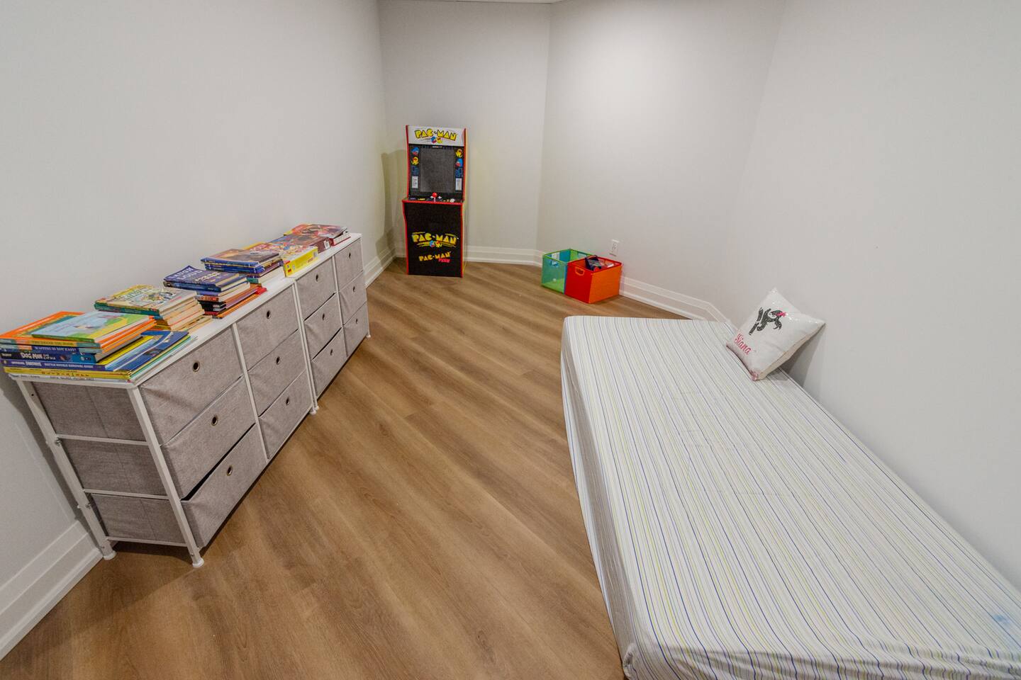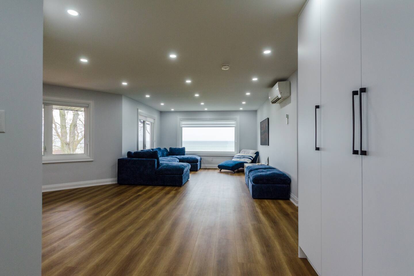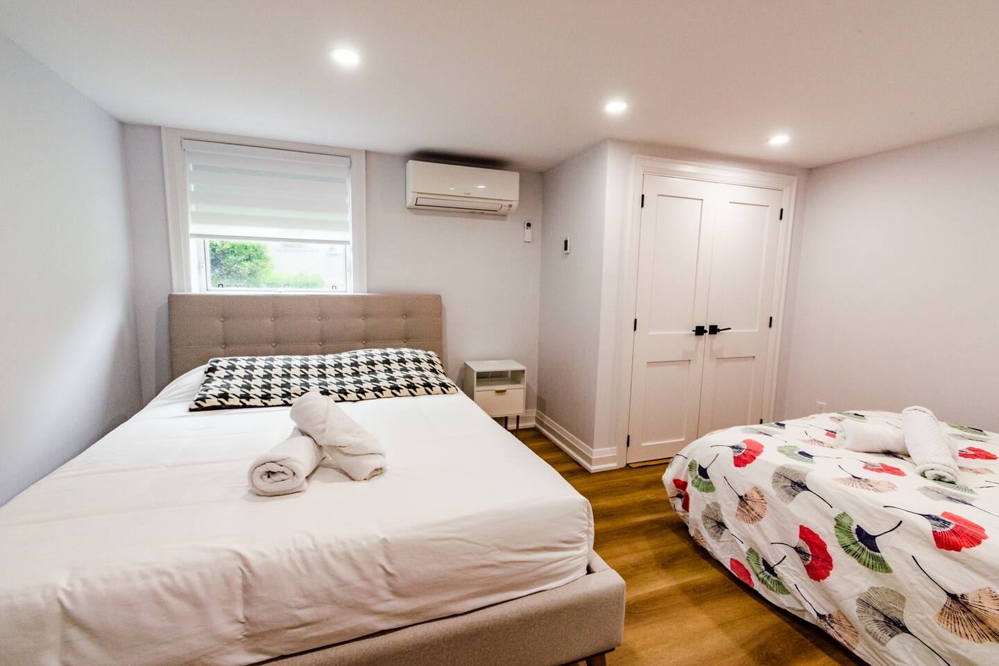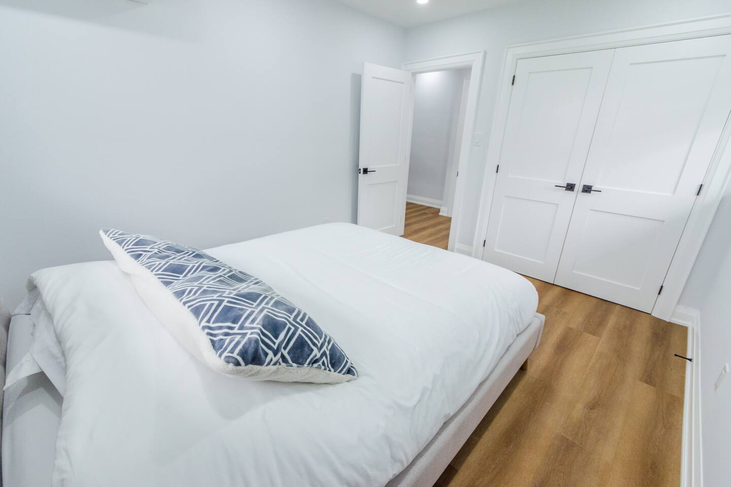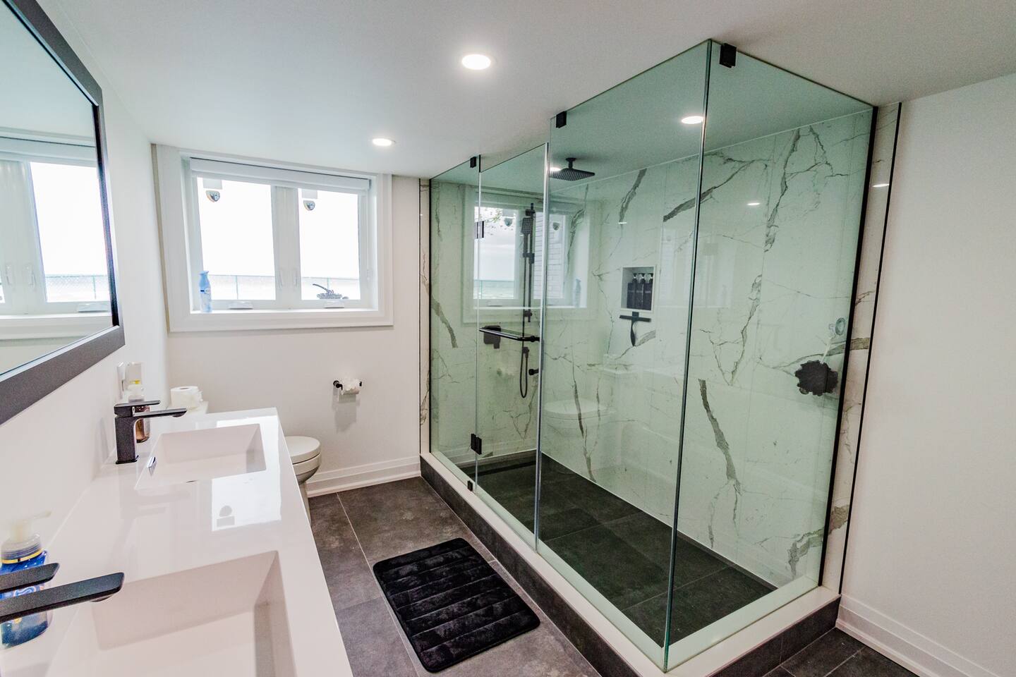 This exquisite Five bedrooms (8 beds), Three Full Bathrooms, a powder room Lake house offers unparalleled luxury and comfort. Boasting private & direct access to the beach and a serene private swimming pool. Enjoy this spacious & beautiful newly renovated, appointed interiors, designed for both relaxation & entertaining. The fully equipped kitchen is chef's delight, featuring modern appliances & ample counter & storage space, perfect for preparing gourmet meals or casual snacks. With Five bedrooms, this house provides ample space and privacy for large families or groups. Main Floor Description: Three bedrooms -Bedroom 1: King Size Bed, Bedroom 2: 1 Queen Bed, Bedroom 3: Bunk bed - 1 double, 1 Twin Bed on top and 1 Twin bed roll out. One Full Bathroom & a Powder room. Laundry Room, Living room with TV & Kitchen & dining, access to the backyard via deck. Walkout Basement Description: Two Bedrooms - Bedroom 4: 1 Queen bed and Bedroom 5: 1 Queen & 1 Double Bed. Two Full Bathrooms, dedicated workstation. Living Room 2 with TV, walkout to the pool area, Children's playroom with TV & a Single Mattress. Extra Queen Mattress provided upon request. Outside, the expansive grounds invite you to embrace waterfront living. Enjoy direct, private access to the lake ideal for picnic, sunbathing, swimming. Cool off in the refreshing private swimming pool, or simply relax on the spacious deck, taking in the breathtaking views while grilling food or enjoying marshmallows around the fire pit. This house is a perfect setting for making memories and enjoying the luxury. Pls note the pool is maintained and cleaned on a weekly basis. The water quality is tested too. The mature trees around the house and the winds can cause dead leaves and debris to accumulate in few hours on the pool which is beyond our control. We appreciate your understanding and help with using skimmer net to remove the natural debris as needed. You can park ONLY 4 to 5 cars. Please note we do have one spot of car parking available in the garage with Tesla Charger (not EV Charger) The house is located in a beautiful town of Port Colborne. So much to explore and enjoy. Be ready you’ll be On Lake Time once you arrive this beautiful town ☺️