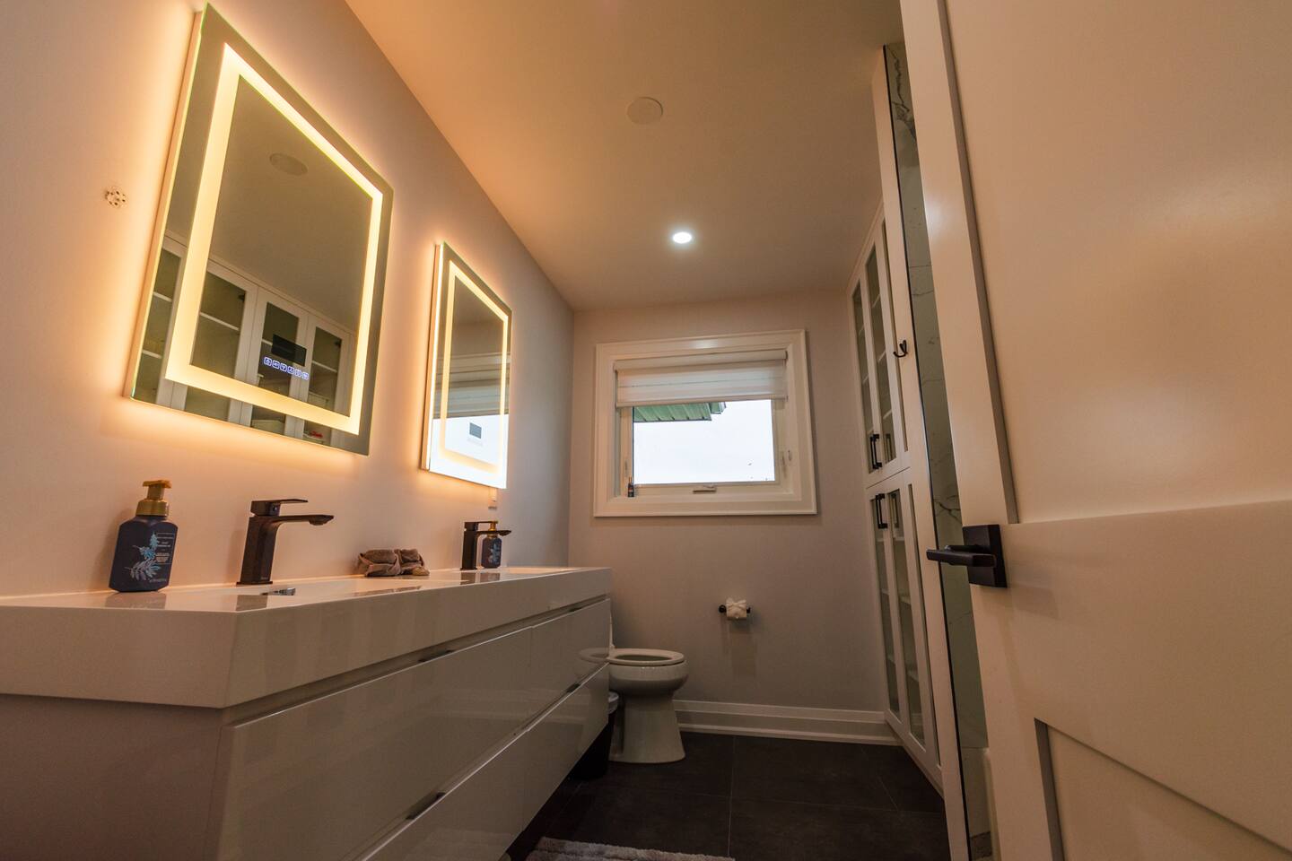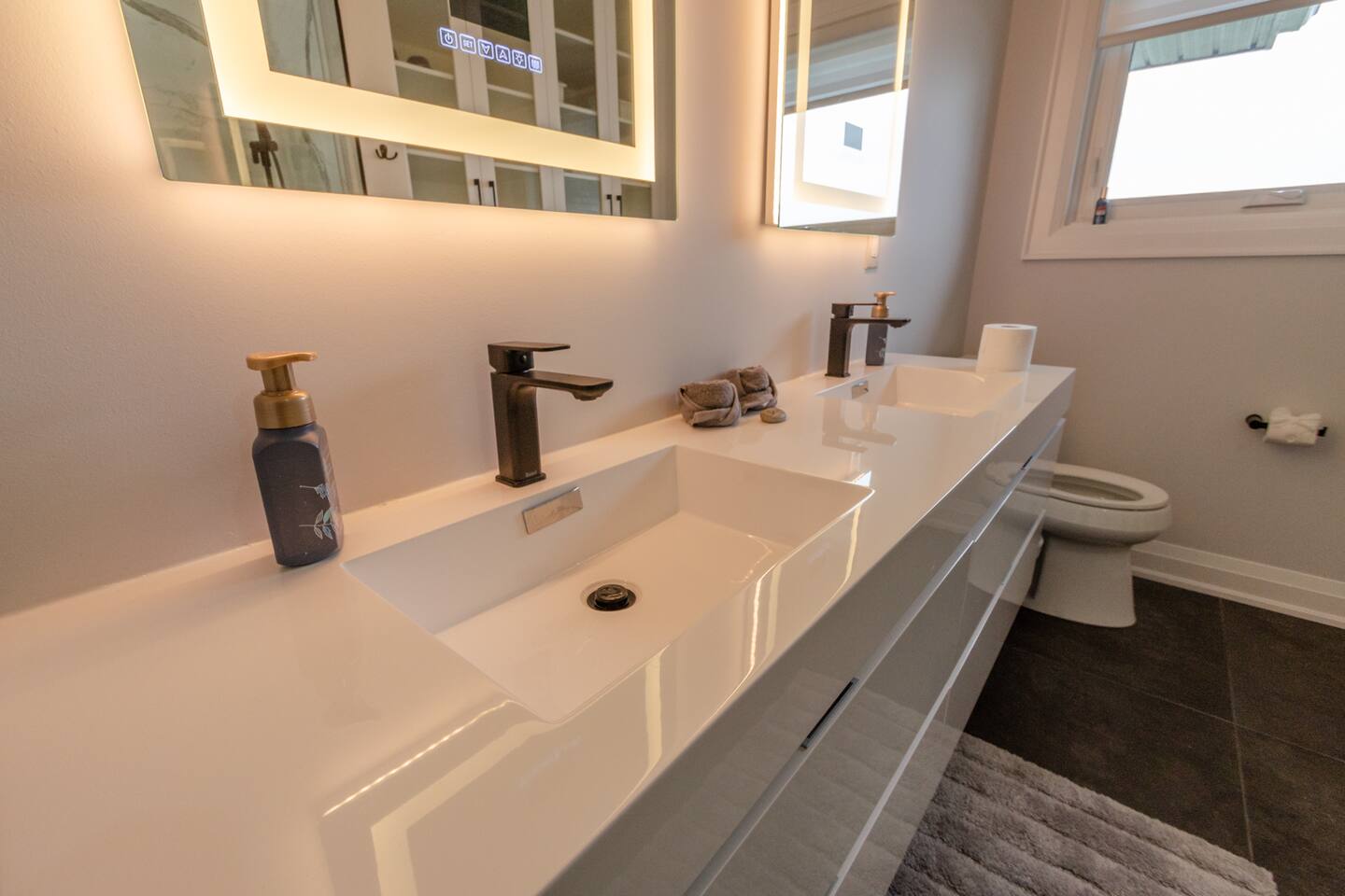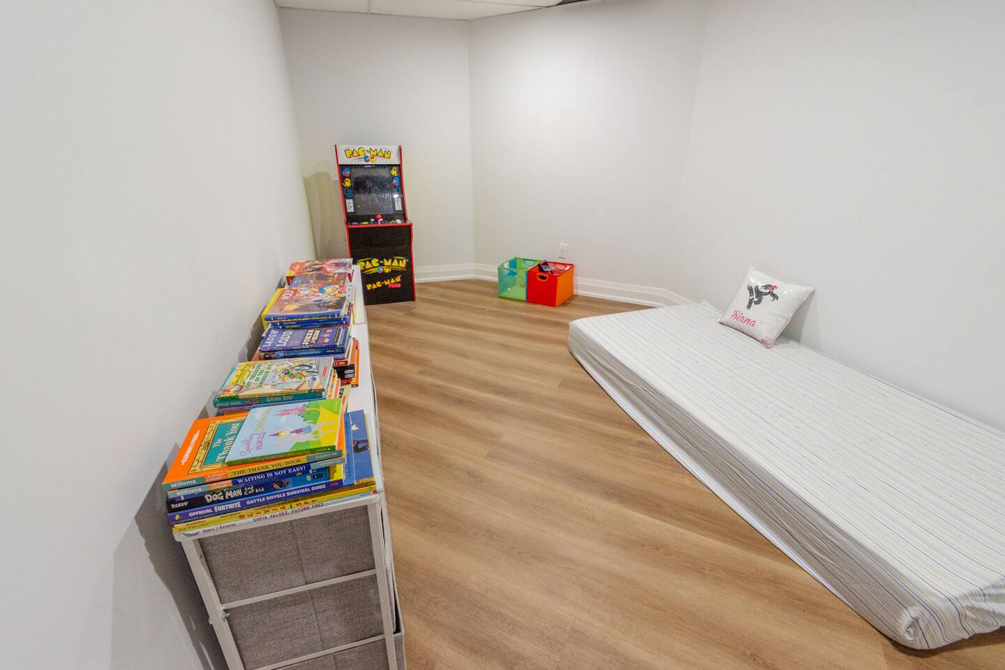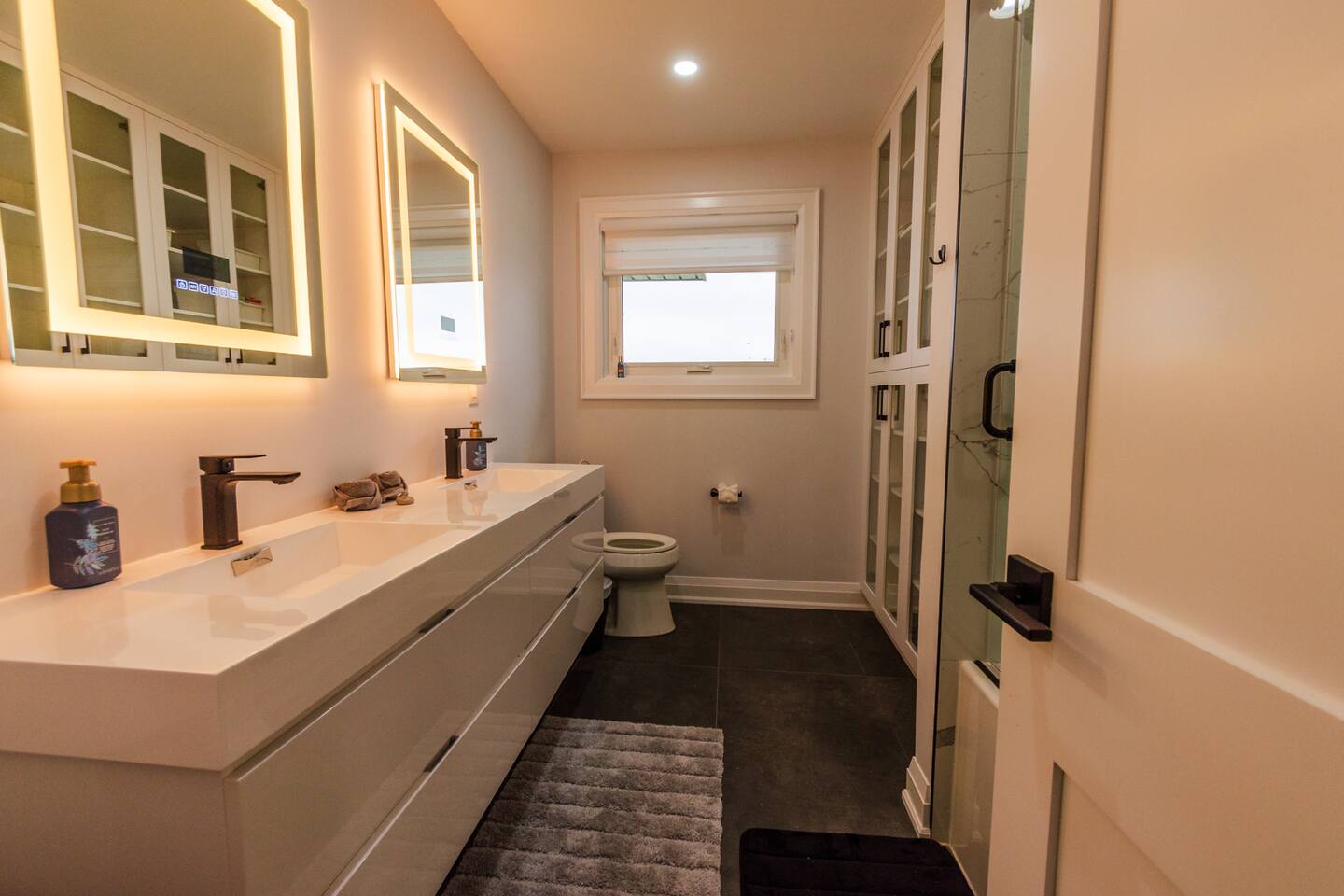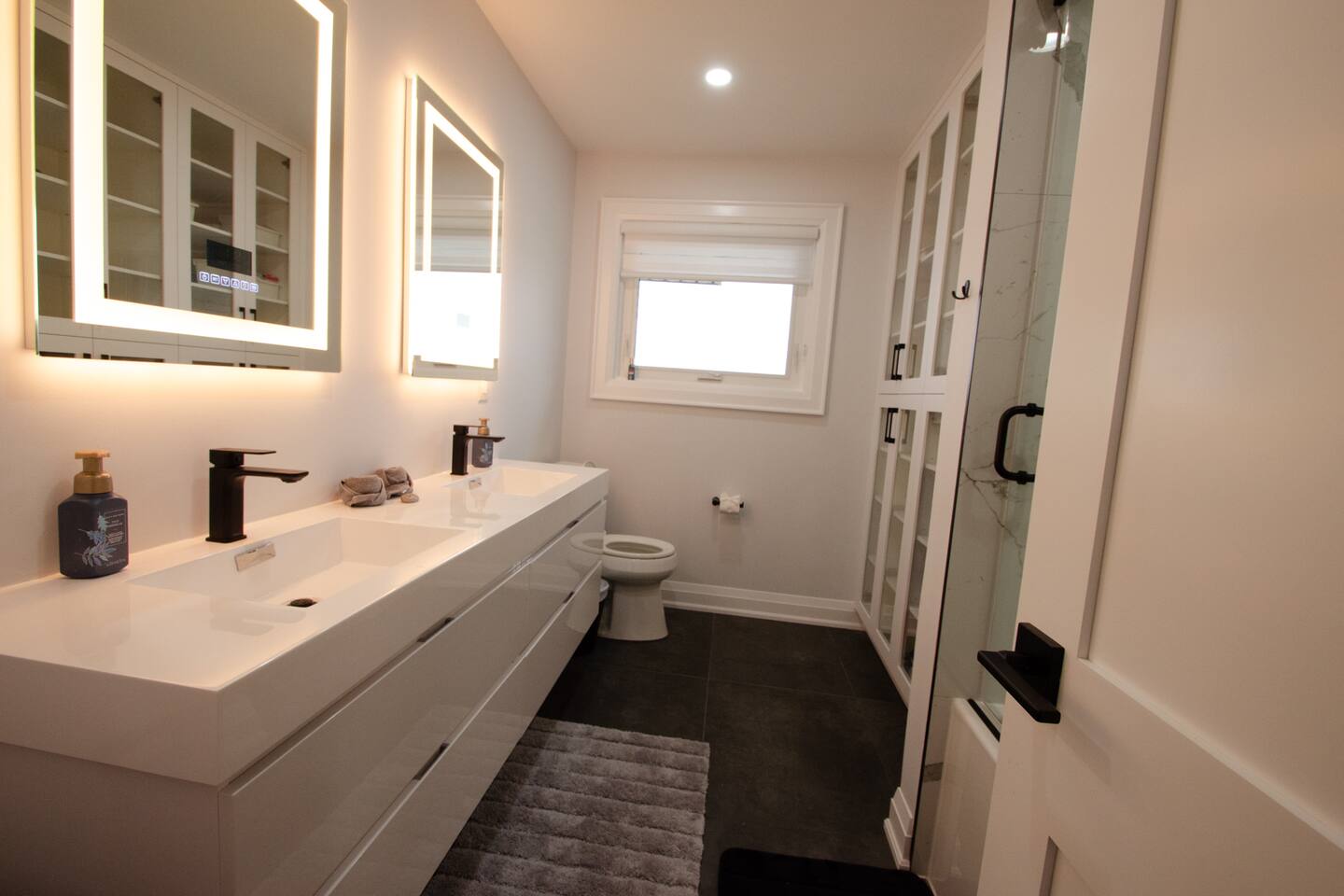 This exquisite Five bedrooms (8 beds), Three Full Bathrooms, a powder room Lake house offers unparalleled luxury and comfort. Boasting private & direct access to the beach and a serene private swimming pool. Enjoy this spacious & beautiful newly renovated, appointed interiors, designed for both relaxation & entertaining. The fully equipped kitchen is chef's delight, featuring modern appliances & ample counter & storage space, perfect for preparing gourmet meals or casual snacks. With Five bedrooms, this house provides ample space and privacy for large families or groups. Main Floor Description: Three bedrooms -Bedroom 1: King Size Bed, Bedroom 2: 1 Queen Bed, Bedroom 3: Bunk bed - 1 double, 1 Twin Bed on top and 1 Twin bed roll out. One Full Bathroom & a Powder room. Laundry Room, Living room with TV & Kitchen & dining, access to the backyard via deck. Walkout Basement Description: Two Bedrooms - Bedroom 4: 1 Queen bed and Bedroom 5: 1 Queen & 1 Double Bed. Two Full Bathrooms, dedicated workstation. Living Room 2 with TV, walkout to the pool area, Children's playroom with TV & a Single Mattress. Extra Queen Mattress provided upon request. Outside, the expansive grounds invite you to embrace waterfront living. Enjoy direct, private access to the lake ideal for picnic, sunbathing, swimming. Cool off in the refreshing private swimming pool, or simply relax on the spacious deck, taking in the breathtaking views while grilling food or enjoying marshmallows around the fire pit. This house is a perfect setting for making memories and enjoying the luxury. Pls note the pool is maintained and cleaned on a weekly basis. The water quality is tested too. The mature trees around the house and the winds can cause dead leaves and debris to accumulate in few hours on the pool which is beyond our control. We appreciate your understanding and help with using skimmer net to remove the natural debris as needed. You can park ONLY 4 to 5 cars. Please note we do have one spot of car parking available in the garage with Tesla Charger (not EV Charger) The house is located in a beautiful town of Port Colborne. So much to explore and enjoy. Be ready you’ll be On Lake Time once you arrive this beautiful town ☺️
