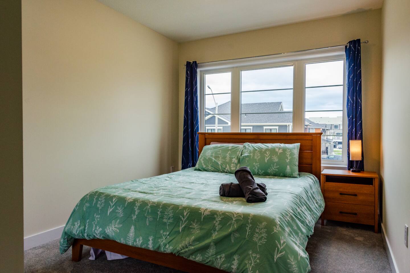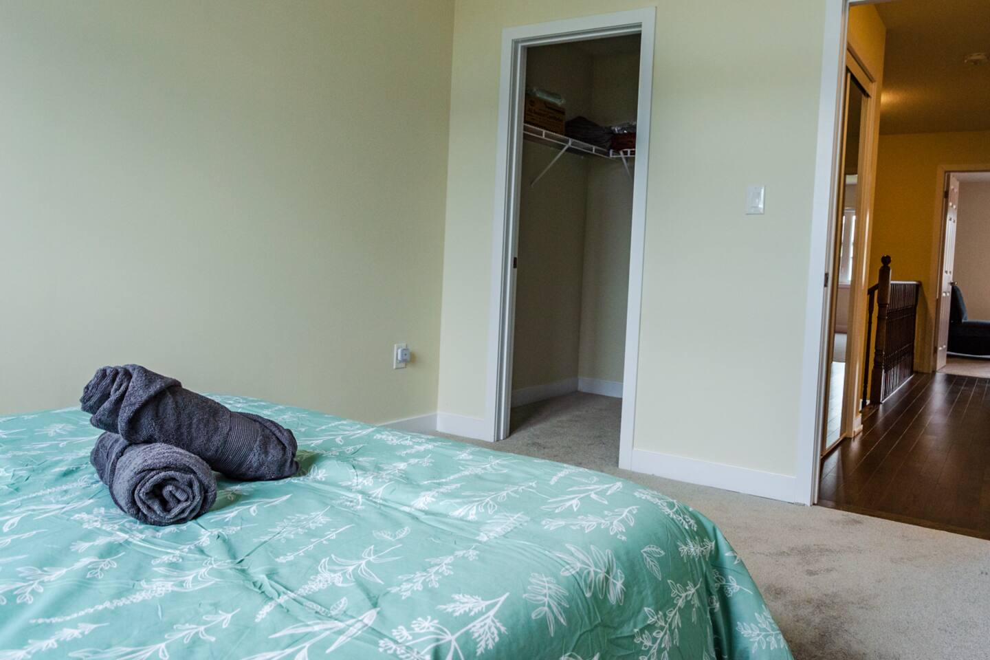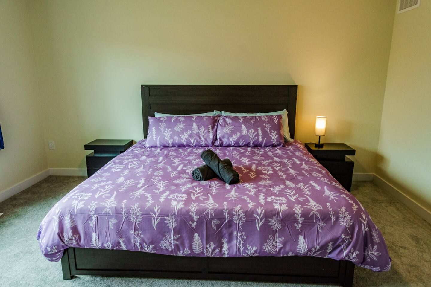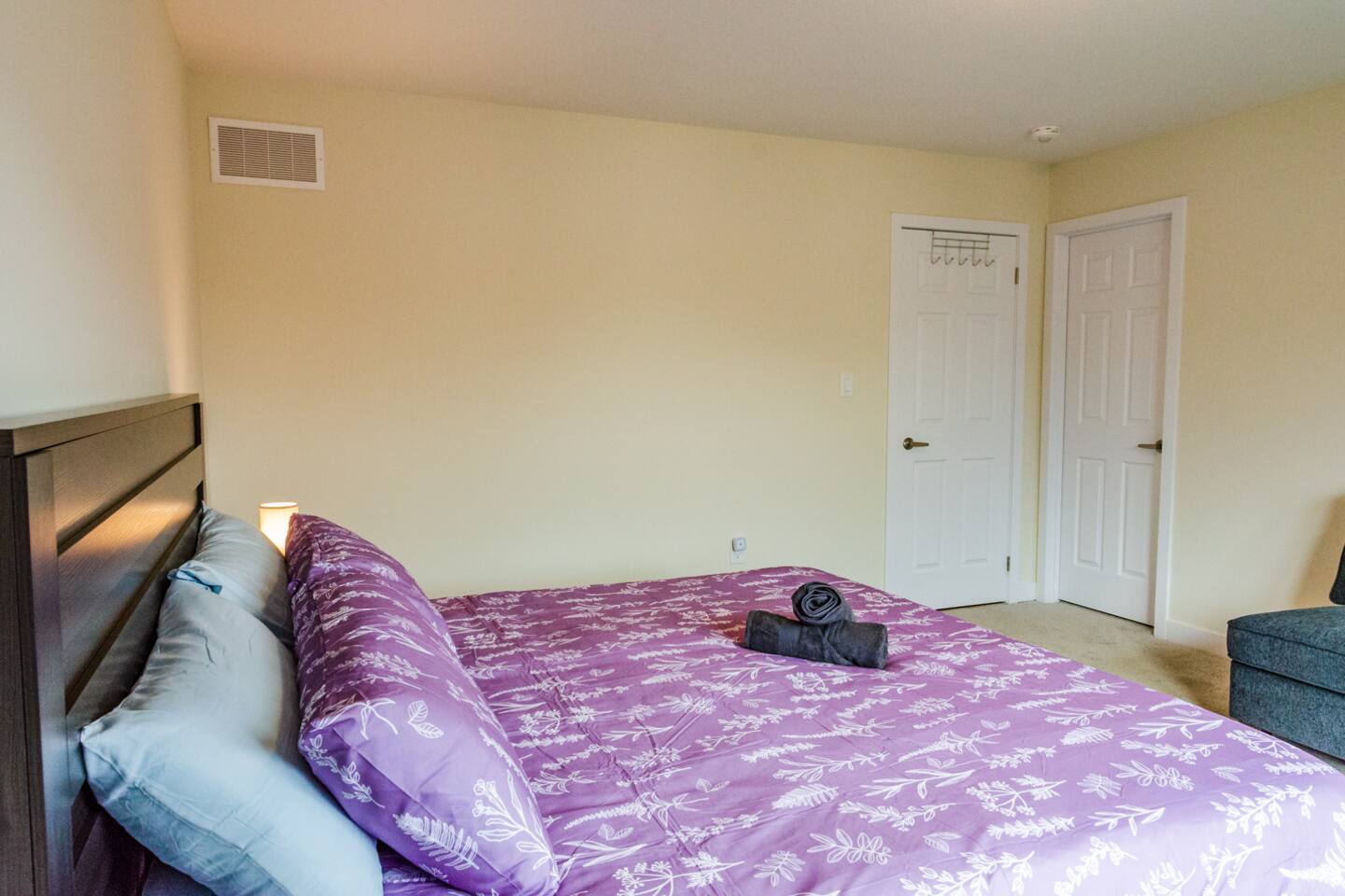 This spacious home offers four beautifully appointed bedrooms, providing ample space for everyone to relax and recharge. The master bedroom features a King Size Bed, while the other three bedrooms are furnished with comfortable queen size beds, ensuring a good night's sleep for all. You'll find 2.5 clean & functional bathrooms, including a master ensuite, a full shared bathroom, and a convenient half-bath on the main floor. Fresh towels and essential toiletries are provided for your convenience. Amole of space in closets. The heart of the home is a fully functional, modern kitchen, equipped with stainless steel appliances, including a stove, oven, microwave, dishwasher, and a full-size refrigerator. A Keurig coffee maker and a toaster are also available. The kitchen opens up to a cozy dining area, perfect for enjoying meals together. Relax in the comfy living room, which is furnished with comfortable seating and a smart TV for your entertainment. The decor is simple and elegant 🌻